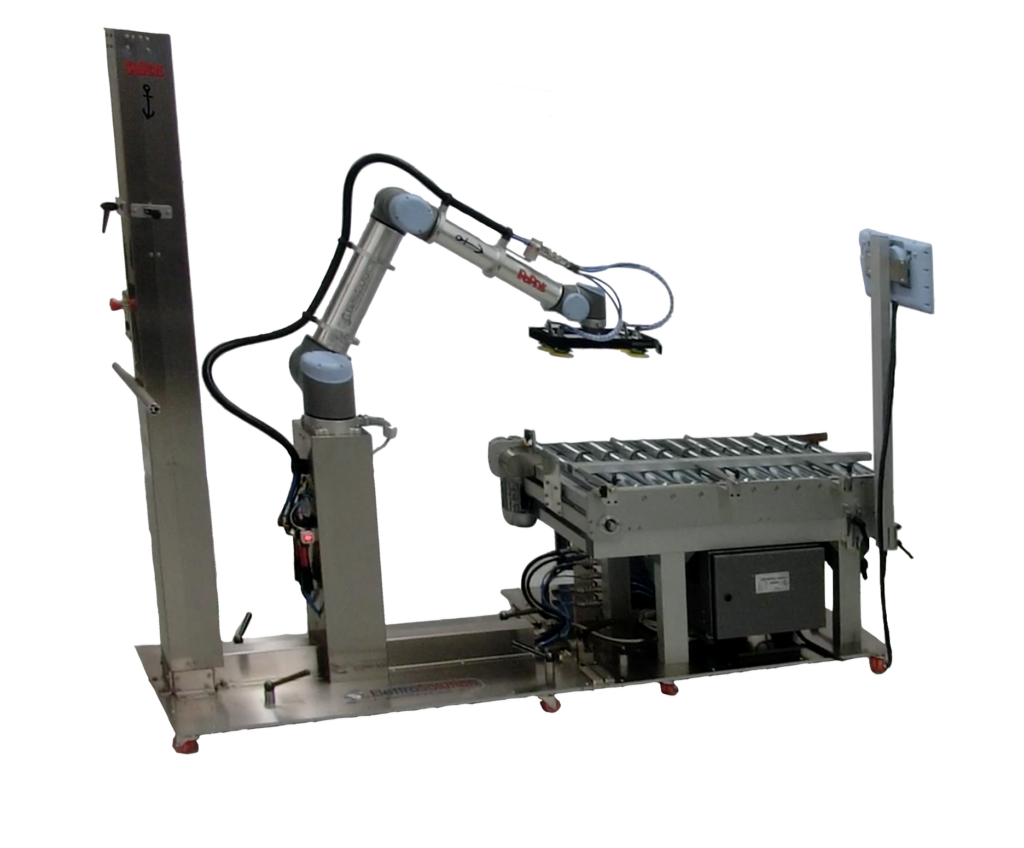 Rullo motorizzato: azionato da motore elettrico, progettato per il trasporto automatico di colli e pallet verso la stazione di pallettizzazione. Garantisce un flusso continuo e controllato dei prodotti, ottimizzando l’allineamento e la precisione nelle fasi di impilamento.